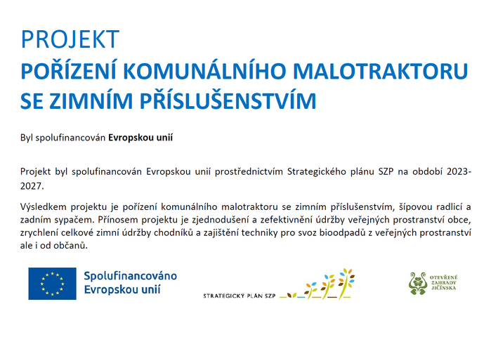 Úvod > Úřad > Projekty obce > Pořízení komunálního malotraktoru se zimním příslušenstvím