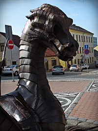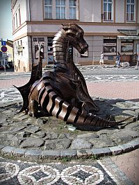 Objevil se neznámo odkud a prý se mu v tomhle pohádkovém městě tak zalíbilo, že už tu zůstal nafurt. Akorát změnil podobu a proměnil se ve skulpturu, kterou možno obdivovat na pěší zóně při západním…